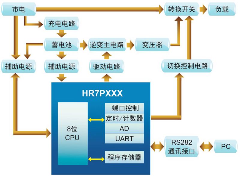 功能說明: ①市電與UPS同步轉(zhuǎn)換。 ②通過PWM閉環(huán)調(diào)節(jié)輸出電壓。 ③蓄電池充電,智能調(diào)節(jié)。 ④通過串口實現(xiàn)與PC通訊。 | 特征說明: ①體積小。 ②電源轉(zhuǎn)換效率高。 ③具有較完善的自我保護系統(tǒng),如:電池電壓較低緊急警告、過流和短路保護、放電結(jié)束保護等。 |